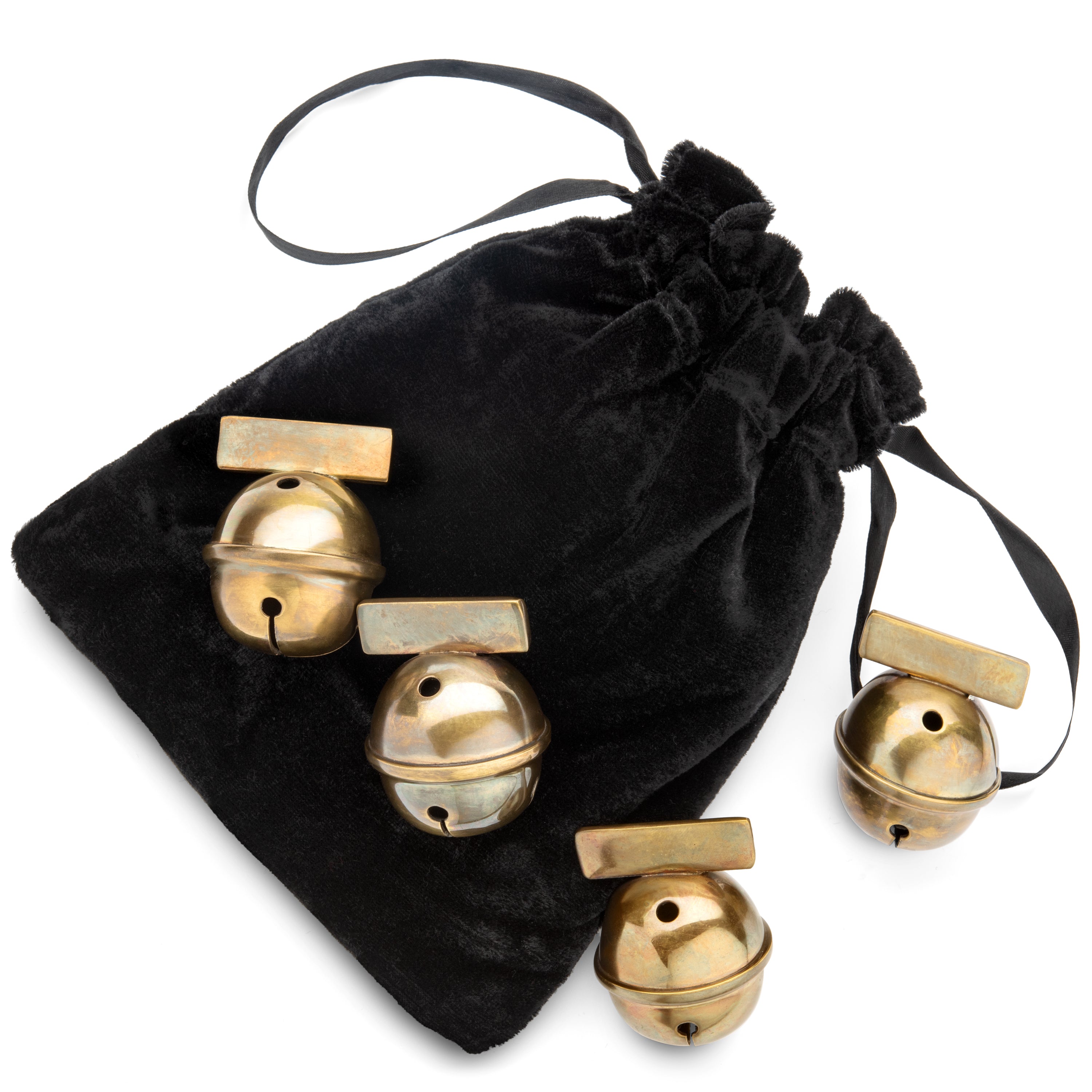 Our Toasting Bells / Place Card Holders are handcrafted from premium lead-free brass. They are approximately 1-5/8" in diameter (4cm) and weigh 2 ounces (57 grams). They are sold in sets of 4 and are presented in beautiful black velvet bags for storage.  The price is for a set of 4 bells.